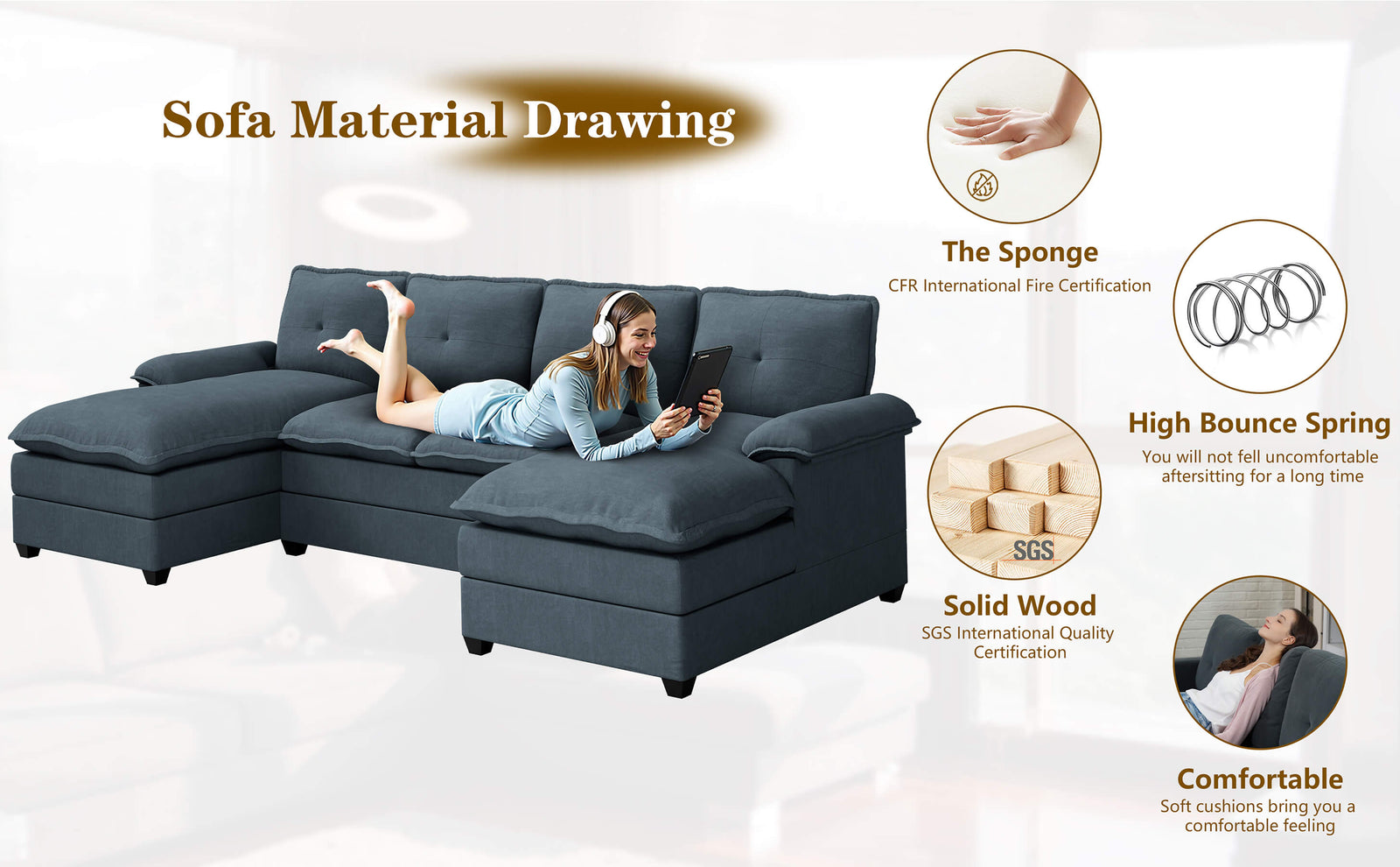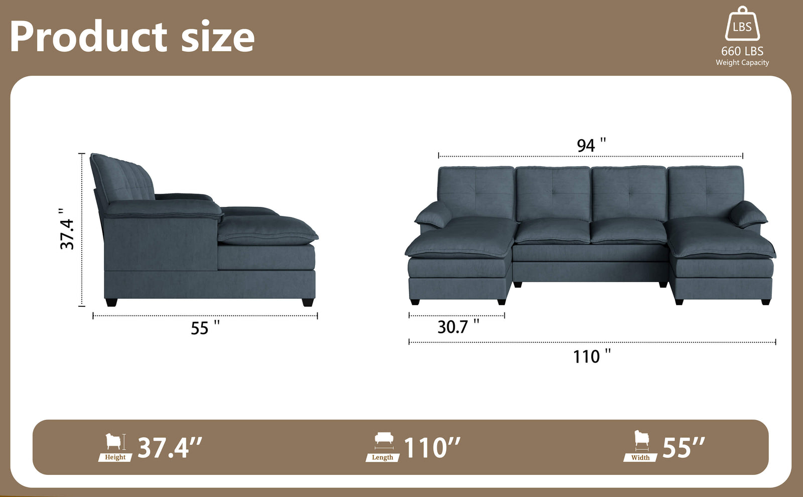 109'' 4-Seat U Shaped Modern Sectional Sofa With Double Chaise